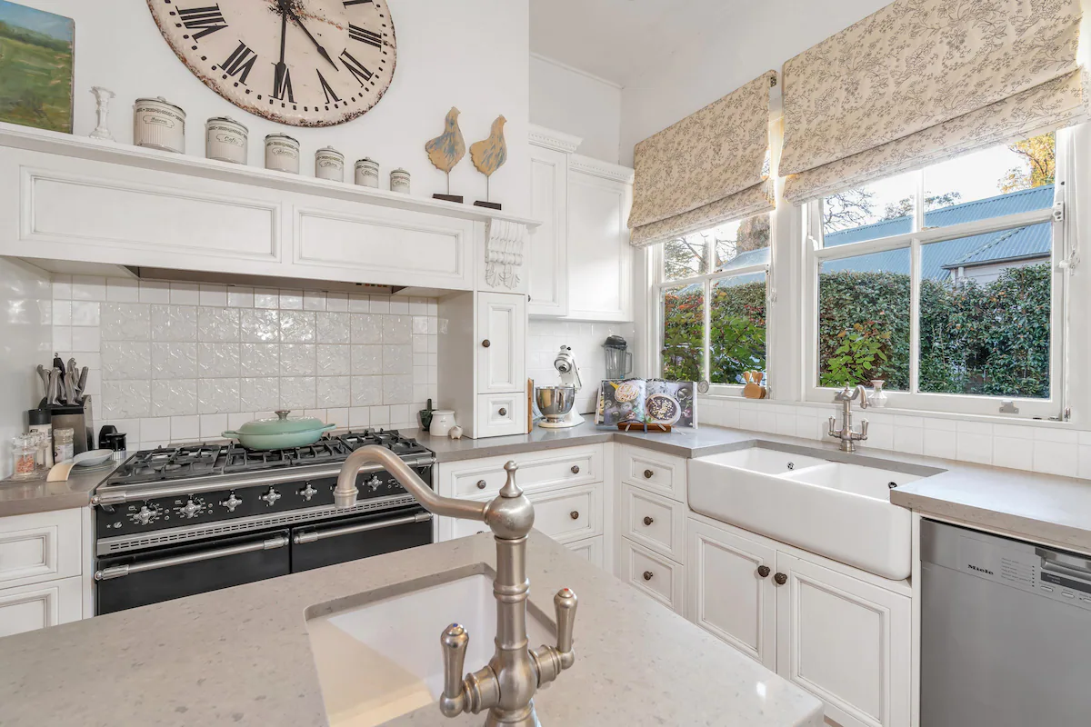 The house is filled with charm and the Four Bedrooms comfortably sleep up to eight guests. French doors open onto a spacious deck which leads into the enclosed garden. The deck features a two-metre long solid marble dining table that can seat ten guests.
